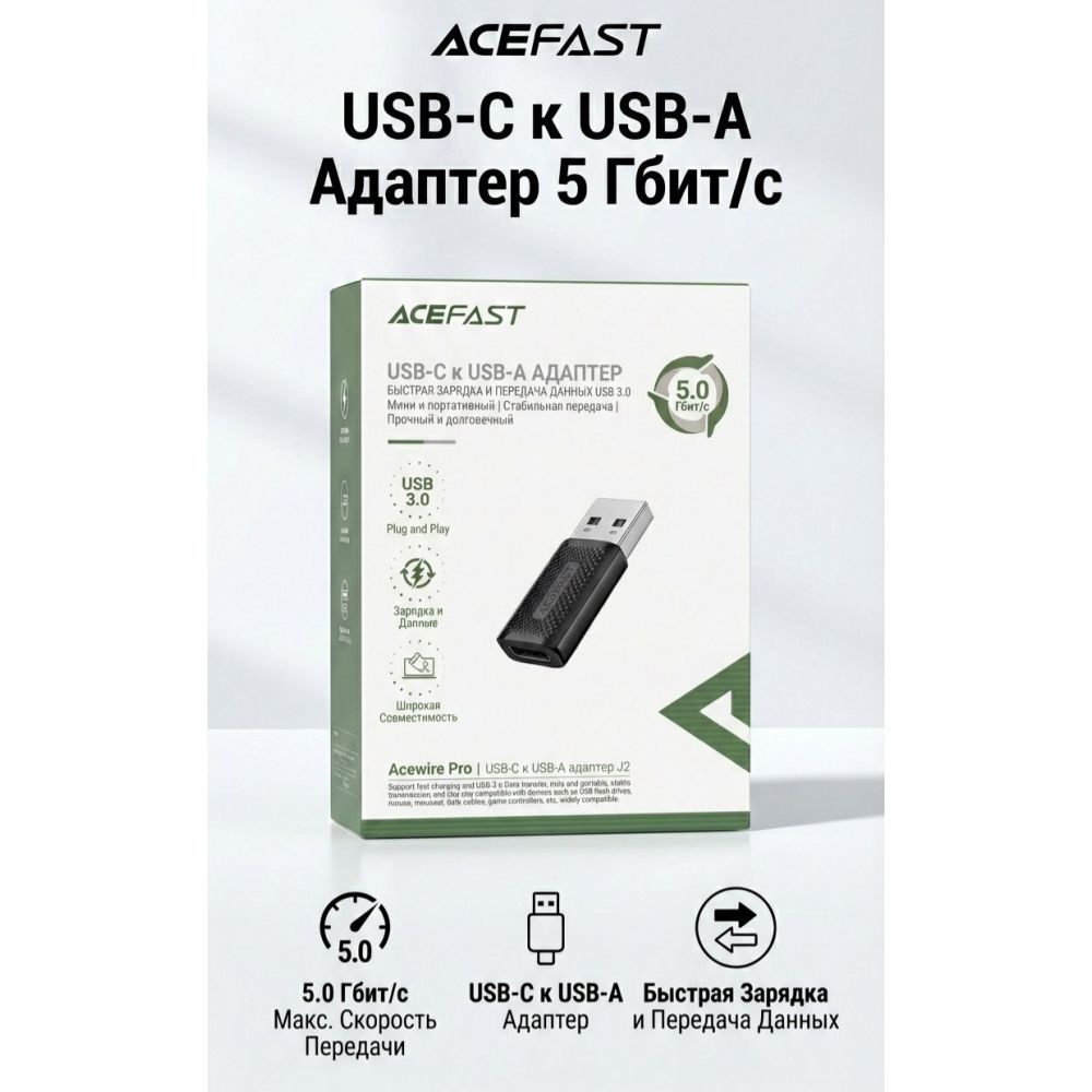Адаптер J2 USB-C на USB-A J2 ACEFAST – это незаменимый аксессуар для расширения возможностей вашего устройства. Этот компактный переходник позволяет подключать к устройствам с портом USB-C мышки, клавиатуры, игровые контроллеры и другие периферийные устройства с USB-A разъемом.Изготовлен из прочного материала TPE,что означает долгий срок эксплуатации. ACEFAST J2 гарантирует стабильную передачу данных и питания, обеспечивая комфортное использование ваших любимых устройств. Компактный размер и прочный корпус делают его идеальным решением для дома, офиса или путешествий.Этот компактный переходник позволит вам расширить возможности вашего смартфона или ноутбука, подключив к нему флеш-накопители, клавиатуру, мышку, игровые контроллеры и другие устройства с USB-A разъемом. Поддержка зарядки + передачи данных USB3.0 (скорость передачи: 5 ГБ), стандарт передачи данных USB 3.0. Стабильная передача, отсутствие катона, правильная передача и зарядка. Совместимость с несколькими устройствами. Изысканный и компактный, удобный в переноске. С ACEFAST J2 вы сможете легко и удобно подключать все необходимые устройства к своим гаджетам, не ограничивая себя в функциональности.